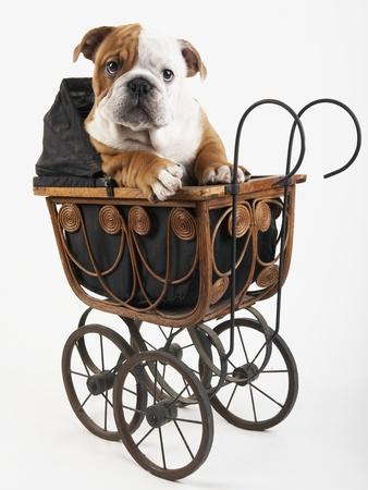 English Bulldog Puppy In A Baby Carriage Photographic Print Peter M Fisher Allposters Com